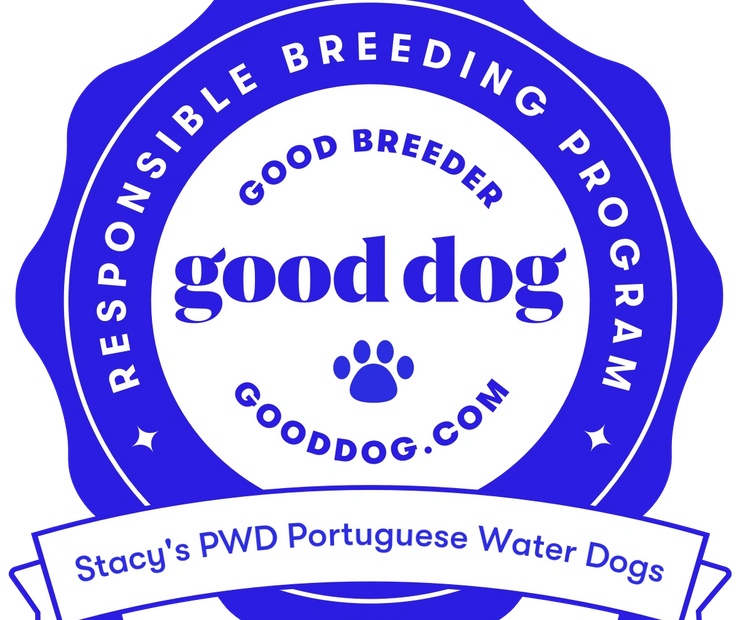 I have been involved in dog breeding since I was very young and I Love our switch to the Portuguese Water Dog line. I have switched to this breed because I find their energy and loyalty very exhilarating. Our dogs are not kennel dogs, they are raised in a healthy, home environment and are kept busy with activities like going to the dog park, swimming, and playing fetch is a favorite. We attend dog classes and our King Jack is now certified CGC! They are an active breed and don't do the best just kept in a kennel. They need fun things to do!